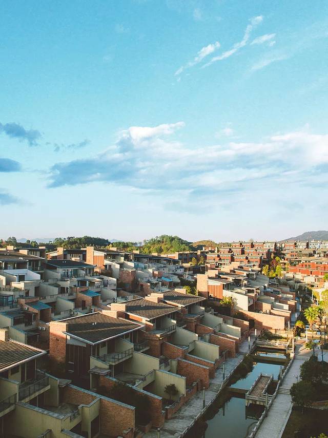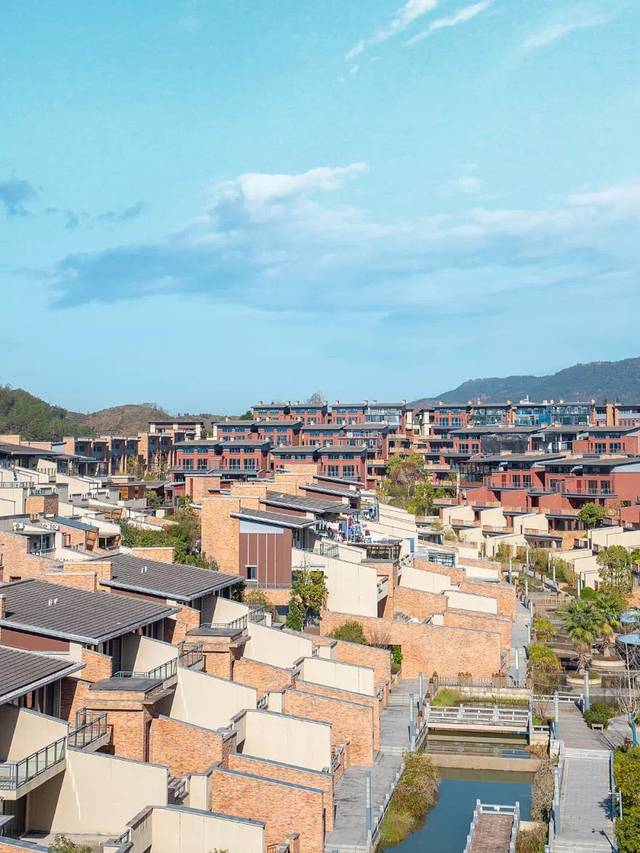 丘梵温泉度假酒店位于武夷山太谷奥特莱斯店小镇别墅区内,蓝天白云下是鳞次栉比的以大地色作为基调的房屋,看上去十分养眼。