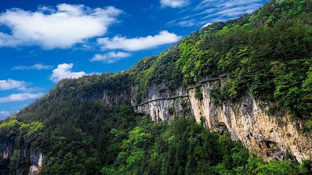 巴山大峡谷属喀斯特地貌,山势奇特,河水清澈,溶洞成群,动物多而珍贵,植物丰富而罕见,简直就是一个巨大的天然植物园,而且还有着“一山有四季,十里不同天”之妙喻。
