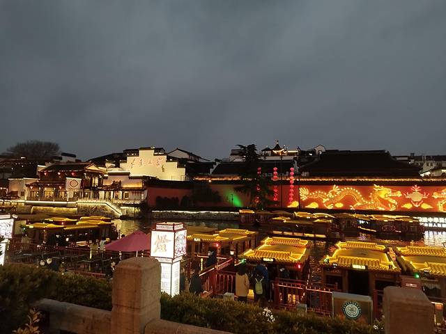 夫子庙秦淮风光带以夫子庙古建筑群为中心,以十里内秦淮河为轴线,东起东水关公园,西至水西门。听从了众多功略中夜游的建议,十分明智。夜览秦淮,灯影绰绰,微飔悠悠。秦淮河上画舫凌波,花灯璀璨.....千年的市井繁华绵延不绝,商铺鳞次栉比,游人如织,行走其中,惬意畅快。