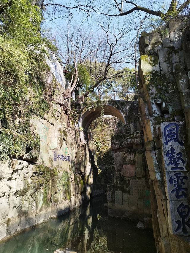 虎丘山风景名胜区中最引人入胜的名胜古迹便是被传为吴王阖闾墓的剑池。从千人石上朝北看,“ 别有洞天”圆洞门旁刻有“虎丘剑池”4个大字,浑厚遒劲,为唐代大书法家颜真卿独子颜頵所书。圆洞内石壁上另刻有“风壑云泉”,笔法潇洒,传为宋代四大书法家之一米芾所书。崖左壁有篆文“剑池”二字,传为大书法家王羲之所书。据方志上记载,剑池下面是吴王阖闾埋葬的地方。更为传奇的是,在阖闾的墓葬中,除了数不清的珠宝玉器,一同入葬的还有3000枚鱼肠剑。剑池因此得名。