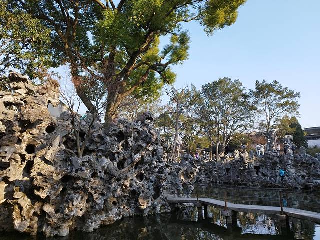 园以叠石取胜,洞壑宛转,怪石林立,水池萦绕