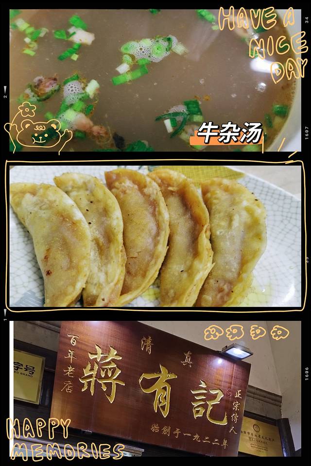 老门东好多美食老店值得打卡,其中“蒋有记”名气最大,空间局促的小店里食客颇多,他家的牛肉汤胡淑味偏重,我喜欢,味道很棒;牛肉锅贴厚重的肉香有甜味提鲜,真的没吃够。