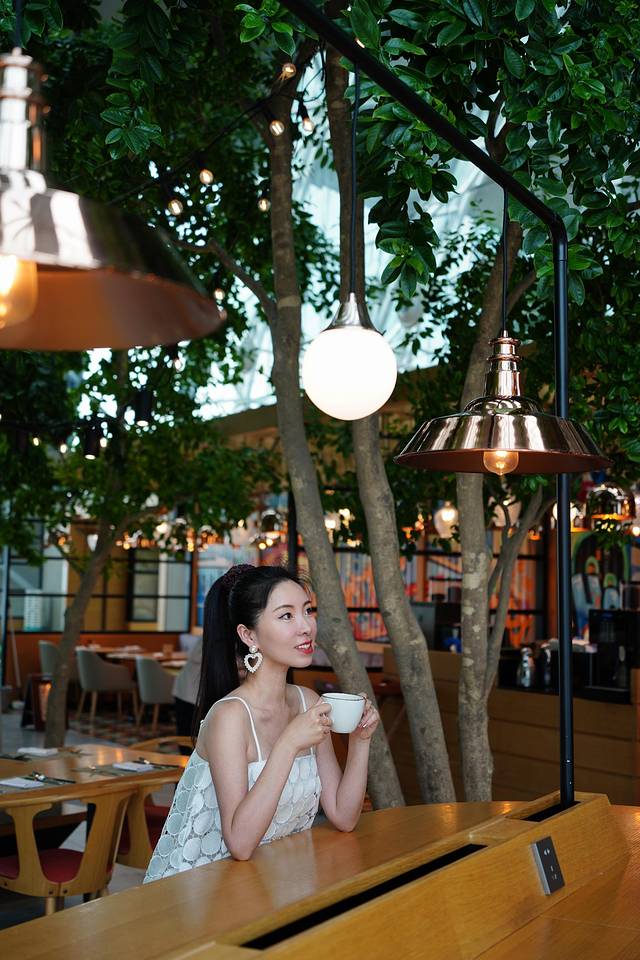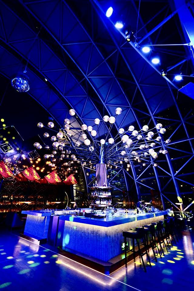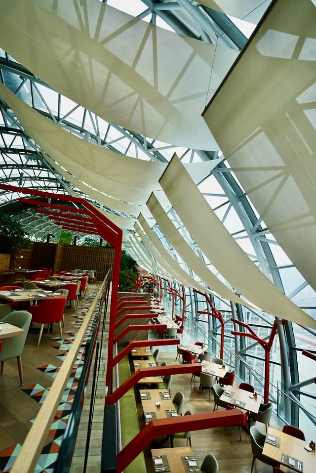 - 重. 林:洲际酒店的自助早餐厅,中午晚上则是对外的自助餐厅。在250米高空移植了如此多真树和绿植竟让人有种在森林里吃饭的感觉。这家餐厅视野也极好,且因为挑高很高,所以内部还设了两层楼。