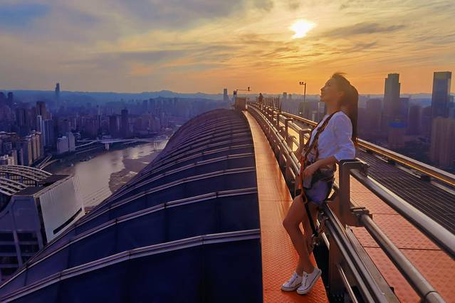 想漫步在重庆的云端吗?想在夕阳下飞入云中吗?那一定要来来这个探索舱·云端乐园。这里有三个项目:云中漫步、云中飞跃,还有个超适合俯瞰重庆江景的观景台。