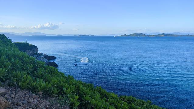 part12 山腰下,有个小泥平台,起飞,沿着海岸线拍了一波,到这里如果想乘小巴或者走山路的可以回去了,最好乘小巴,上路危险了点。再下去就是路径选择区,可以徒步回西涌和东涌,徒步西涌好多人,徒步东涌还是很多人,但我在徒步群里面听说凉了好多人。还可以选择坐快艇回去西涌,50元,血亏。
