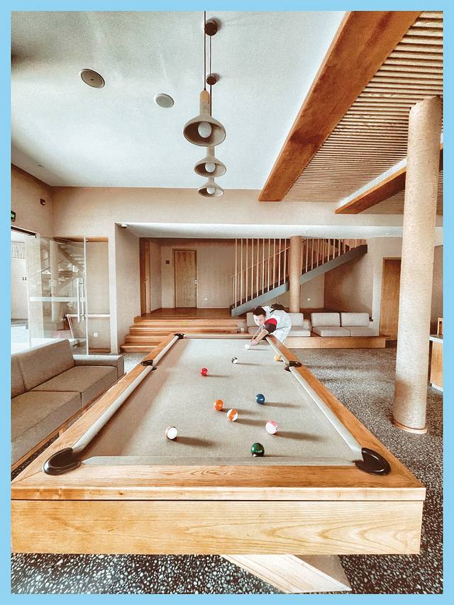 度假村里,有各种娱乐项目。台球、茶室、图书馆、儿童中心、电子游戏、公共汤泉、办公区域…除了出行的家庭和情侣,还有企业团建独家的人群。还是挺值的。拍照也很美,度假村中每一栋住宿都有各类型房间,设计感十足,拍照打卡自然不在话下。酒店旁边就是公园,从酒店中直接可以进去游玩。