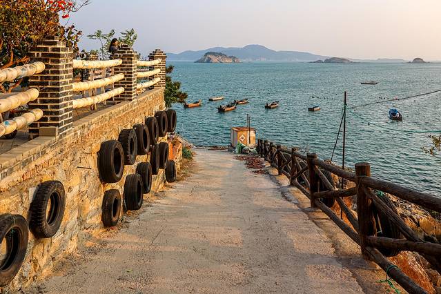 ⚠注意:礁石在涨潮的时候一定不要上去,危险。码头可以下台阶去拍照,但是最后一级台阶经常浸在海水中导致有很多海藻会很湿滑,也需要注意安全,渔船都是私人的不能上去哦~
