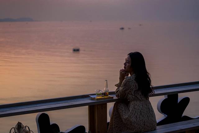 但是我个人最喜欢的是金海湾栈桥这里欣赏日落,我们去的时候天气好的不像话,也是游客比较少的时候、意外发现金海湾栈桥这里有一家不太起眼的咖啡店,在这里等日落能不错过一分一秒的美好。
