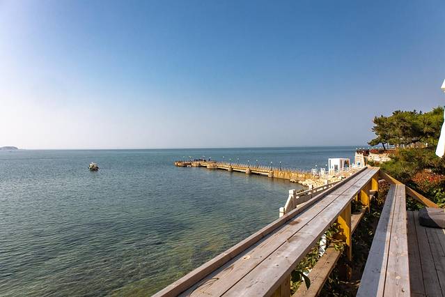 这个季节来威海再适合不过了,人少景美,海蓝的像是水洗过一样,P都P不出这么好看的颜色哈哈哈哈,威海神奇的是,有的海是蓝色的,有的海是绿色的,绿色的果冻海美的无滤镜直出,人间仙境,不为过呀。还去什么泰国看果冻海,直接来威海果冻海看够~非常有特色的胶东渔民们打渔回来,在码头上面直接可以买到最新鲜的海鲜,还有一直追着渔民们跑的海鸥,是一道非常美的风景线,我们在海边呆了有一个多小时,看这一幕幕的感觉即使是电影拍出来,也没有现实中如此有烟火气息。