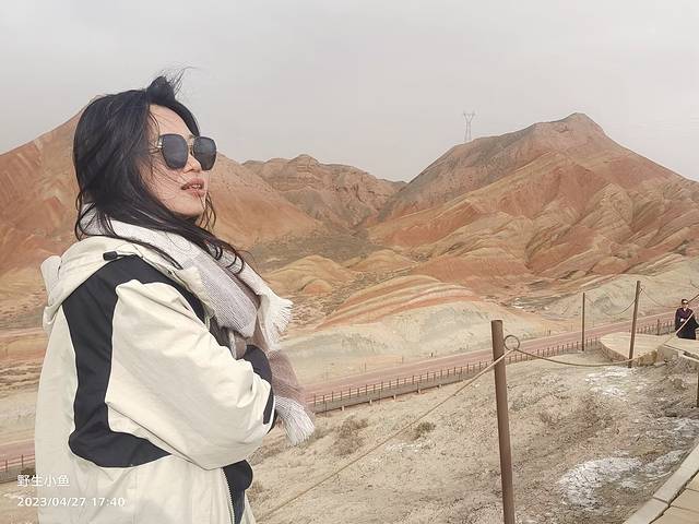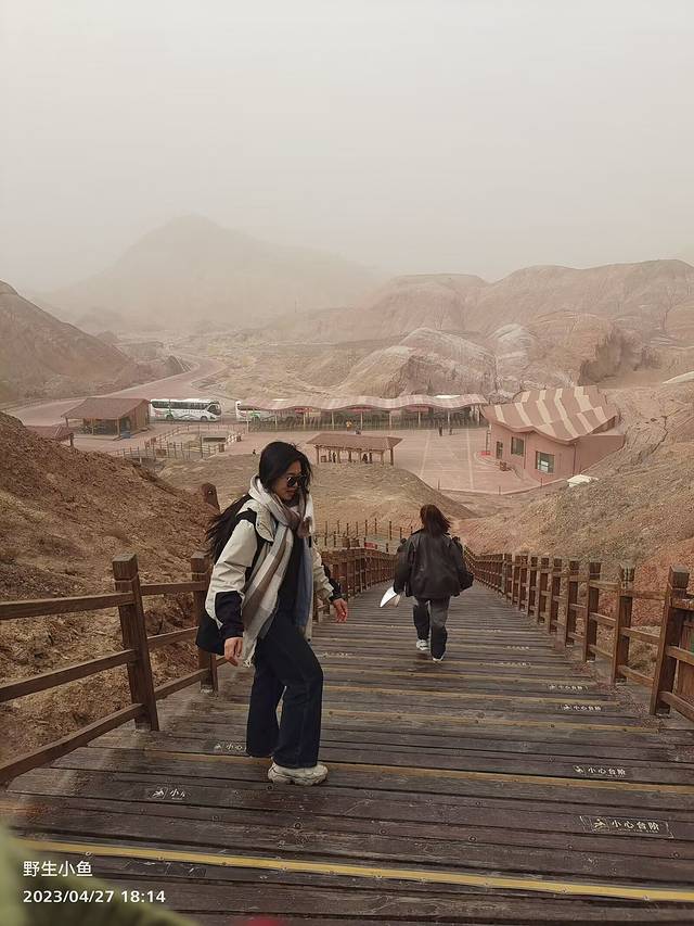 傍晚,我们来到张掖丹霞国家地质公园。太阳还没下山,可公园里黄沙漫天,灰蒙蒙一片,让我遇见了七彩丹霞的另一面。