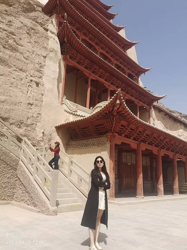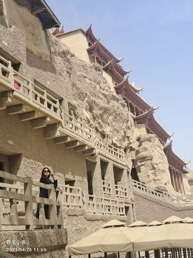 4月26日清晨,阳光还没来及把冷冽的空气晒温热,我们一行人已经在敦煌,正踏入莫高窟景区。在晨光的映衬下,莫高窟更加庄严神秘,仿佛能听见古老的佛音在空气中回荡。分批次排好队,领到讲解耳机,便跟着一个个讲解员进入莫高窟内里。走进洞窟, 仿佛穿越了时空, 感受到了那份古老的宁静与美丽。色彩斑澜的壁画、佛像,展示着各个朝代的审美和生活习惯,诉说着千百年来的历史与传奇。终年不见阳光的洞窟,泛着丝丝冰凉,我们借着讲解员手中微弱的灯光,观赏着一个个形态各异的佛像,一幅幅生动形象的壁画,也惊叹着讲解员说出的一个个传奇。(洞窟内比较狭窄,人流较多,行走时要注意脚下,并且洞窟内禁止拍照哦)
