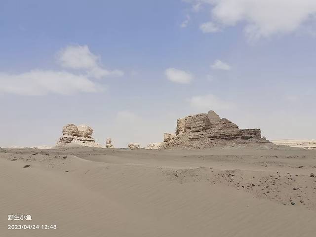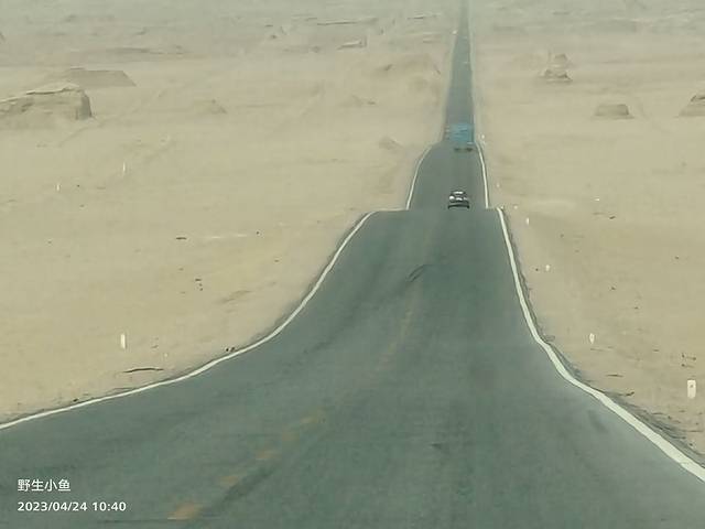 4月24日,去往水上雅丹需要经过声名鹊起的U型公路。呼啸的风裹夹着沙粒击打车窗,孤独的公路两旁是被风吹成各种形态的风蚀林,仿若一座座古城堡屹立在苍茫大地之上。第一次窥见雅丹地貌,就被震撼到说不出话(主要是风沙太大,一张嘴满口沙砾),在西北风的凛冽与咆哮中,感受到了一条公路的粗犷与苍凉!
