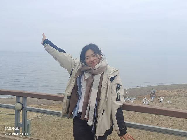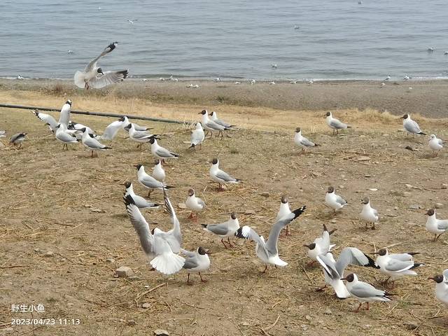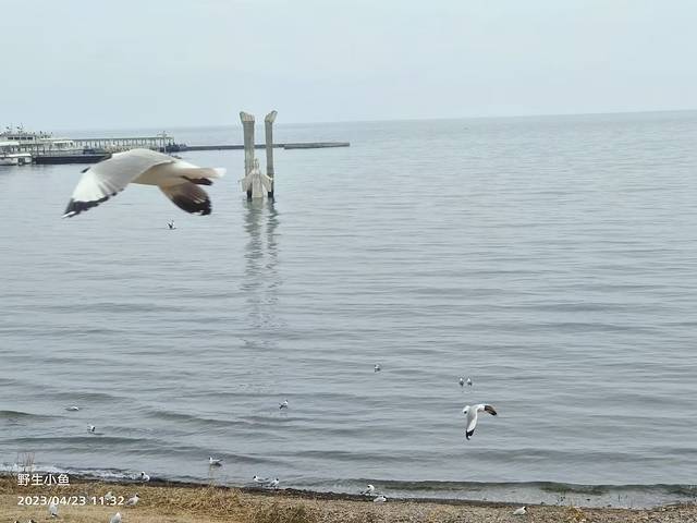 也许是我们游玩的季节过早,开湖中的青海湖,不是波光粼粼的湖绿色,湖面雾气缭绕、散之不去,微漾的湖水好像脆弱易碎的玻璃,太阳都不敢冒头,好似生怕阳光会晒伤娇弱的湖水!我们行走在岸边,丝丝晨风夹杂着冰凉的空气钻进围巾,抚过我们偶然不小心裸露的脖颈,四月的青海湖还是冷的。风在追逐它的方向,湖水在摇晃它的孩子,枯黄的草埋下它的种子,水鸟在惬意它的生活,我们站着不说话,就十分美好。喜欢混迹在拉萨街头巷尾的那位多情活佛,是看见这样的海与天才决定隐入尘烟的么?我们的司机兼领队弟弟拉着我去追逐岸边一群群悠然自在,悠闲漫步间或展翅飞行的水鸟。在掌心放一些饼干屑,期待水鸟飞来啄食,直到我的手都举酸了,才确定这里的水鸟终年有游人投喂,根本不屑我掌心这点点饼干屑!