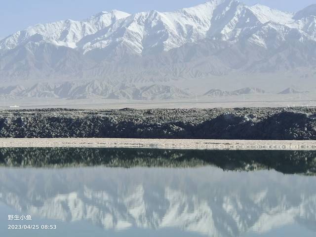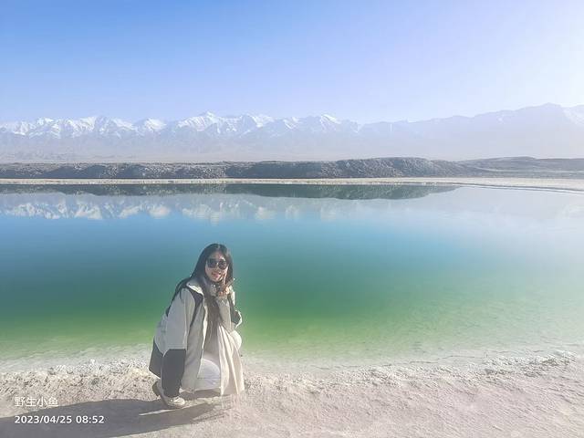 看了那么多天的湖,翡翠湖依然使我折服,惊叹不已。从没有想像过,峰顶积雪的黑褐色高山,淡墨色的戈壁,碧绿的湖水,雪白的积盐,能同时出现在一个画面里。此时的翡翠湖,你可以遇见高山、荒漠、彩湖、白雪,还有冷得瑟瑟发抖的我。