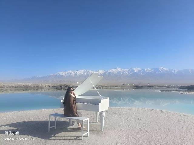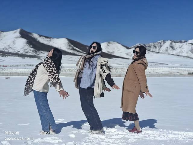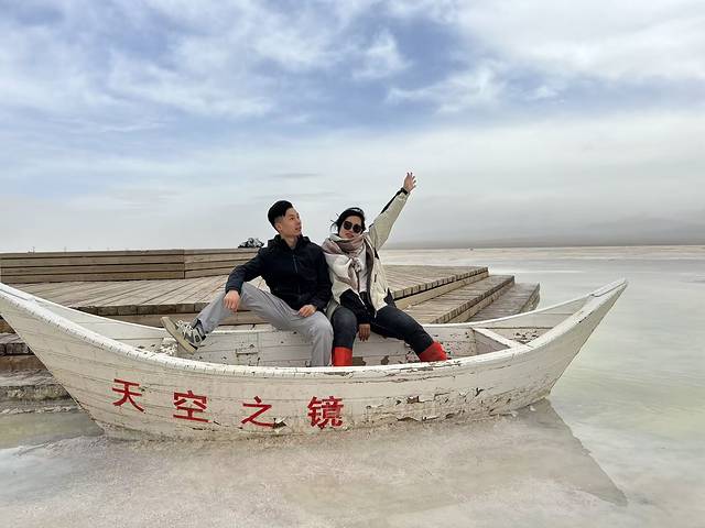 茫茫的一片白相接着淡蓝色的天空,人说茶卡盐湖的白,是天地间最纯净的调色板!漫步在湖边,一股淡淡的盐味扑鼻而来,仿佛置身于神秘的世界。可惜我看到的盐湖没有倒映天空的蓝,还没开化的茶卡盐湖,说实话我是失望的。没关系,撒开腿玩就好啦!