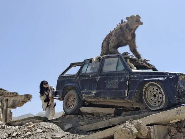 下午我们来到了偏远的荒漠-阿克塞石油小镇,这地方火起来的缘由是电影《九层妖塔》的取景地。关于阿克塞小镇,有很多光怪陆离的传说。据说有二十万人一夜之间离奇消失,有人说是被外星人带走,有人说是闹鬼,还有人认为小镇遭到了不明原因的袭击。空旷,荒凉、遗留了大量的拍摄电影时使用的素材,加之各种离奇古怪的传说,使这个荒废的小镇披上了神秘恐怖的外衣。