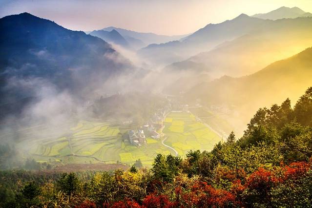 ·油菜花(2 月中旬 - 4 月上旬):柯城区石梁镇中央方村;衢江区莲花镇杜山沿村、衢江沿江公路诗画风光带、衢江莲花未来乡村;龙游瀫石光艺术生态走廊、塔石镇;开化长虹台回山、大溪边月岭村;