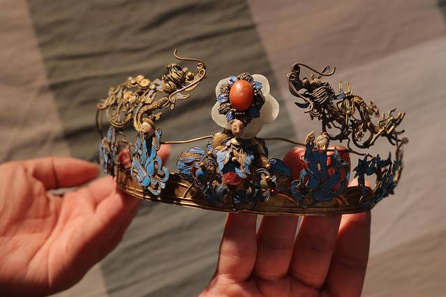 原来清代晋商太太们的头面暗藏密码,即点翠用翠鸟毛数量代表家族地位,这样的凤冠,当年得是富可敌国的人家才能用!