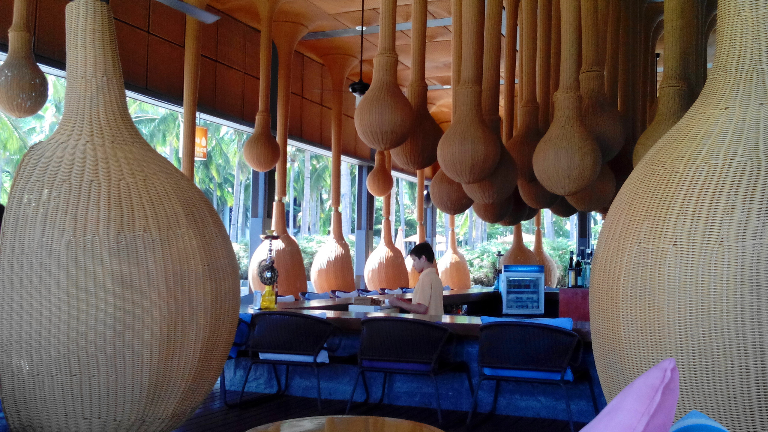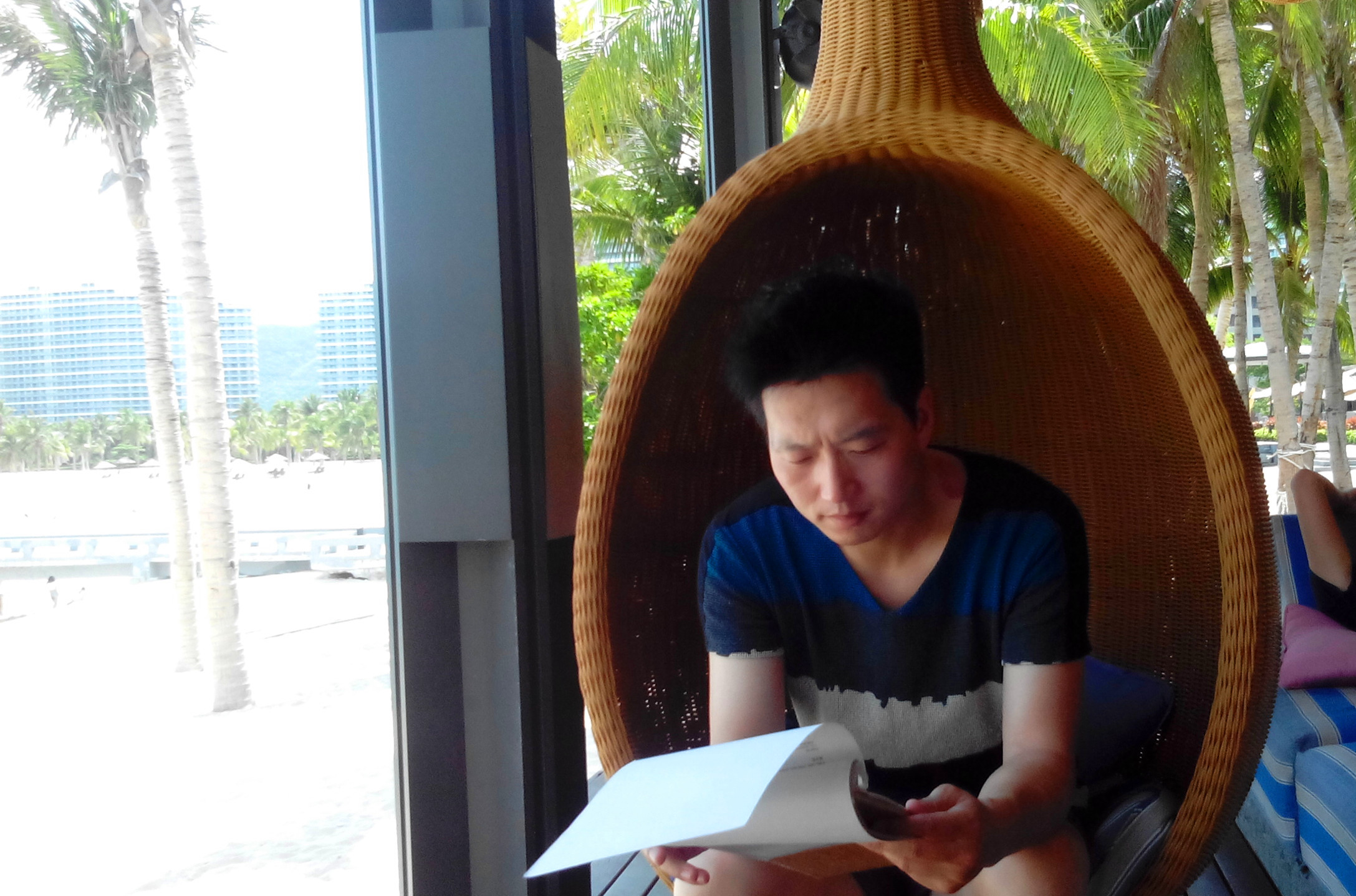自从看到这个沙滩吧的许多照片后,就想来亲自坐一下~ 半山半岛洲际在小东海,从我们住的半山锦江旁的小路继续向深处开。 大东海是很热闹的市区,进入半山的路其实就已经转为幽静了,前往小东海的一路山路则更加幽静。 小东海老公说感觉像迪拜的富人区,很多漂亮的现代高楼住宅,人却很少。 开个世纪联华,走进去不像联华超市,倒像city shop的氛围。 沙滩吧真的很有特色,加上外面风景,晃晃地坐着,舒适地躺着,都很棒。