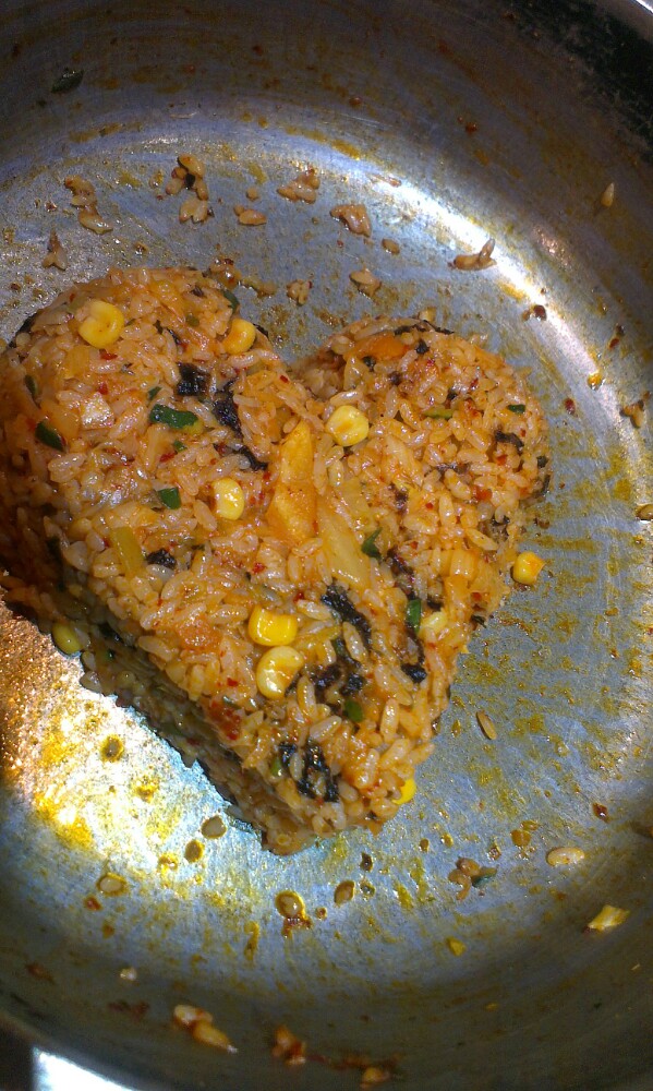 感觉我们点的那份104元的套餐量非常多,以至于我们俩都没吃完年糕火锅,然后就叫店员上奶酪炒饭了...