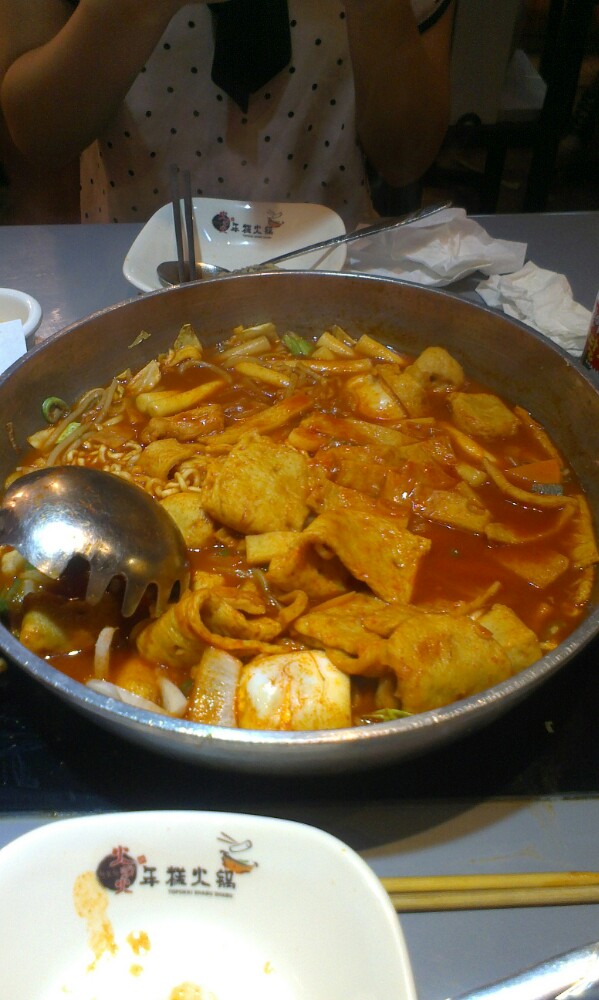 我和一位同学昨天早上起早去的火炉火,大约10点钟到了,然后店员说是10点40开始进人,我们原本打算附近溜达溜达,之后就在门口站着等了,没两分钟,外面就有一个店员来给我们搬来了椅子,时间快到了的时间,好多小女生就自觉排起了队,我们是幸运的第二组,点餐后还有一罐免费的饮料赠送哟,感觉我们点的那份104元的套餐量非常多,以至于我们俩都没吃完年糕火锅,然后就叫店员上奶酪炒饭了,炒饭是我们看着她现场做的,个人感觉非常好吃,有海苔的味道,而且还有吃芝士披萨的感觉,服务员的态度也比较不错,一进门很热情的异口同声的说 啊牛哈塞哟。让她换了碗筷的时候态度也没有变糟糕。总之,感觉钱花的还是比较值得的,期待下一次与同学们的聚会中会出现在那里。