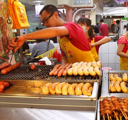 士林升记大香肠的名气不是嘴上说说的,一家小小的小吃店居然还上过当地的美食节目,这样的声名远扬,生意本来就很好,这样一来,就锦上添花啦。而且,即便这些年这里的生意这么好,价格却一直没怎么变化,恃宠而骄这个缺点在这家店根本是看不到的。这里的士林大香肠自然是卖得最好的啦,每一根都很大,油光锃亮,有些地方还会避免不了的有些焦,但是这样更好吃啦。还有烤鸡皮也很好吃,鸡皮烤的香香脆脆的,小小的鸡皮却能考出人间美味,也是师傅的酱汁和手艺的独到了。