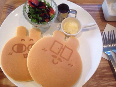 推荐菜品MAJO&SADY早午餐套餐。薄烤饼是MAJO和SADY的小脸,非常可爱,让你不忍下口