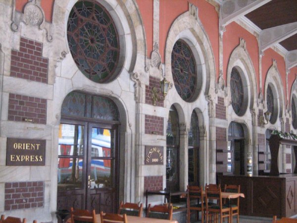 还有一家老店,很多人在那儿吃饭,同时感受下老车站的氛围。门外有在装修,可惜了不能拍全景老火车站,现在放了一辆新火车。里面有在经营旋转舞的表演。还有一家老店,很多人在那儿吃饭,同时感受下老车站的氛围。门外有在装修,可惜了不能拍全景。试了一下站里面的摇铃,声音真的很洪亮。