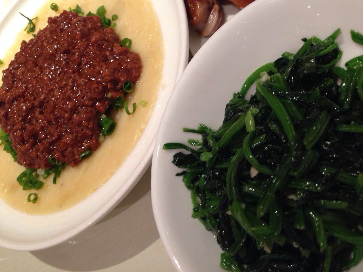 酱骨头,酱猪蹄子味道太好了,让我们4个人啃光了,奶香地瓜外表找不到地瓜模样,很好吃。凉拌菜一般!