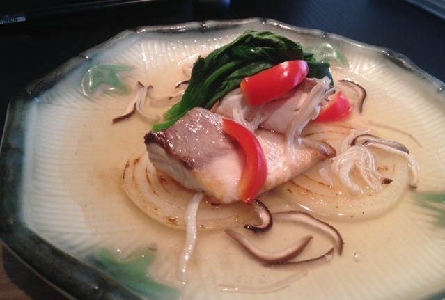 香格里拉饭店西村餐厅,一进门,眼前颇具设计感的建筑风格,用木、石、玻璃、水和金属吴中建筑元素完美结合,整个就餐环境高雅又格调。裙带菜和海蜇,新鲜爽口开胃。轻乳酪寿司为寿司饭+轻乳酪+牛油果+黄瓜的组合,乳酪香醇牛油果绵软配合着乳酪让人有着极大的满足感,而黄瓜和寿司饭搭配在一起又解除了那一点点乳酪与牛油果的过于厚重的感觉,觉得可以堪称完美组合。难忘的是烤银鳕鱼,白色的鳕鱼上薄薄的一层甜的酱汁,显得特别干净,吃起来甜甜的,滑滑的,浓郁的酱汁的清香混合在新鲜滑嫩的鱼肉里。铁板烧的牛肉超滑嫩非常赞。服务员穿戴规范有礼貌,服务有水准。
