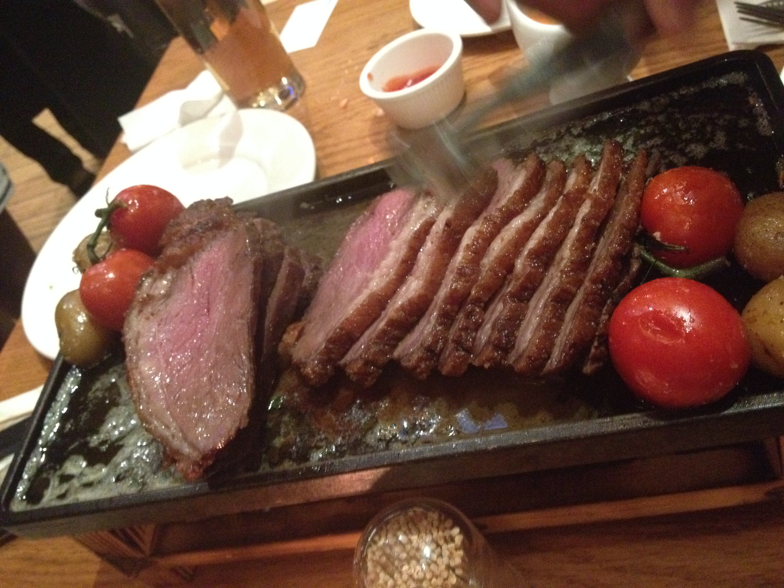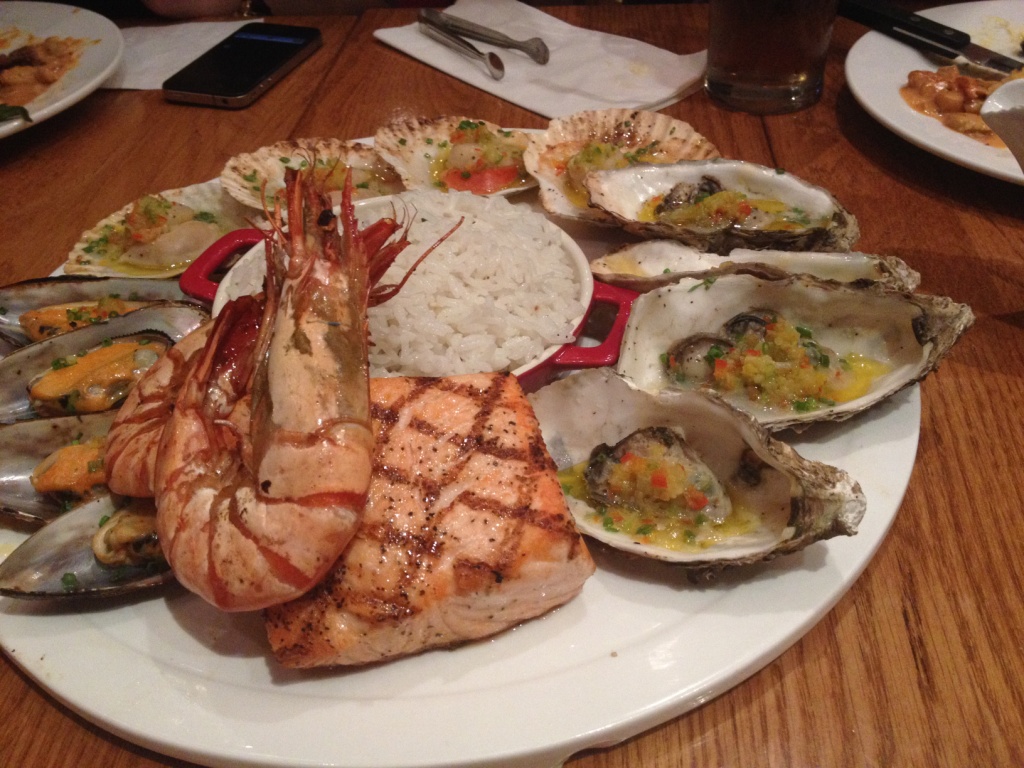 鸡心最好吃,其他肉都太老 海鲜拼盘里面烤虾不错 三角肉是牛臀上的一块,需要另外付钱,398一份...