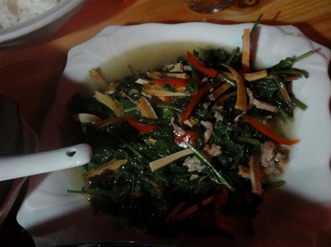 来宏村的路上遇到两个东北老乡,于是很厚脸皮的蹭了顿饭。 臭鳜鱼很好吃啊,鱼肉嫩嫩的,有丝丝的辣,配上韭菜,味道很特别,最喜欢的徽菜就是这个了。 笋尖炒腊肉也很好吃,竹笋很嫩的,腊肉也很入味的。 野生蕨菜炒豆干也很好吃,蕨菜一吃就知道是新鲜的刚刚摘下来的。 酸菜汤和东北的有点不一样啊,很清淡。 杨梅酒是自家酿的,白酒的味道,喝起来有淡淡的果香。喜欢喝酒的不要错过。 老板家的孩子只有12岁,小小年纪帮着点菜,上菜,很勤快的。可爱的孩子。 坐在外边的露天位,看着月沼的风光,吹着夜风,吃着好吃的徽菜,然后和老乡侃侃大山,这种感觉好幸福啊! 这家还提供住宿的,位置就在月沼旁边,推开窗就能看到月沼了。地理位置绝佳。