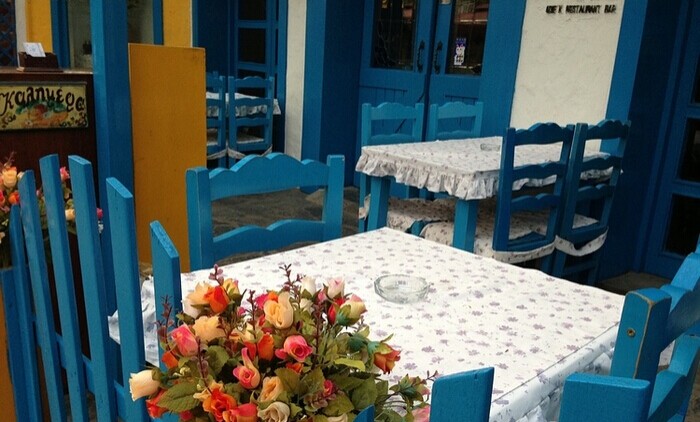 很安静的一家小店,位于使馆区内部,里面布置是希腊风格的,餐厅整体装饰都是蓝白色。灯光很到位,适合和两三个好友聚会,或者和爱人用餐。单点菜品的价格很贵,所以建议去吃中午的自助,你想吃的东西基本都能吃到。自助部分一如既往的很精致,海鲜烧烤拼盘,有虾、鱼、鱿鱼圈。都非常的新鲜,尤其是虾,相当新鲜好吃。推荐烤羊腿, 一点都不膻, 保留了羊肉的新鲜清香。 三文鱼也不错, 肉质细腻。冷盘包括各种蔬菜沙拉,茄子卷、腌制的蘑菇拌菜、土豆培根沙拉。有个土豆泥很绵软,是热的,应该算配菜吧。汤是两种:龙虾汤、蔬菜汤,前者不错,但不要期待里面有龙虾喔,蔬菜汤看着比较寡淡,没尝试。甜品推荐提拉米苏,布丁不细腻。热饮有咖啡茶两个选择,咖啡配甜品不错。总的来说价格很实惠。服务员素质较高。