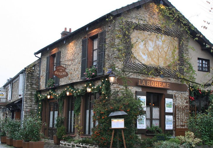 画家村狭窄的街道静谧安然,造型典雅的法式民居建筑,一般只有二、三层高,建筑外形丰富而独特,精致又美观,弥漫着浓郁的法式风情和历史之美。 小镇上的房子现在很多已变为画廊、画室,展览、出售着当今流行的各种风格流派的绘画,也有雕塑、装饰等作品。