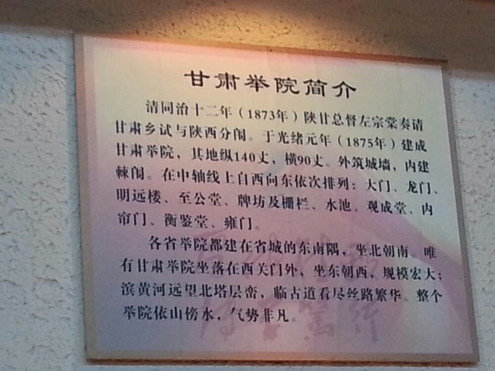 清代科举考试的地方,兰州大学的前身,左宗棠设立。
