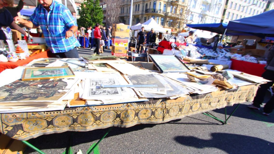 跳蚤市场,每周六都有,人很多。卖什么都有,旧衣物、字画、餐具、旧手表、旧书、旧唱片、装饰品....如果喜欢的话,一上午逛不完。我们周五下午经过那里,冷冷清清,一个人也没有,只有一群鸽子在地上觅食,周六上午一下子冒出那么多人,吓了一跳。逛逛还蛮好玩的。