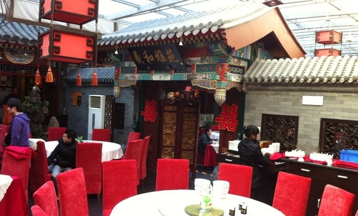 羲和雅苑烤鸭坊(中关村店)的环境很好,装修比较精致,座椅很舒适。四合院落封顶改成的餐厅,环境氛围很赞。干净整洁,光线美好,很有老北京味儿。独辟了南墙处的房出来设了玻璃可以看到烤鸭烹制的过程。烤鸭好吃,属于新派,鸭肉片的厚度适中,紧致的鸭肉中透出淡淡的肉香,配料很多。尤其是鸭皮,脆脆的,蘸糖吃简直是一绝!椒盐鸭架也好吃,香酥咸香。鸡丁很软嫩,赛蟹黄还是那种蟹黄和鸡蛋混起来的感觉,比较经典。瘦肉裹黄芥茉酱汁口感独特,传统鸭肉甜面酱卷饼也不赖。糖醋青梅小排口味酸甜适度,肉质略老。赛螃蟹酸度有余姜味不够足,最爱狮子头,肉质酱汁味道都刚刚好。服务员热情,上菜速度快。