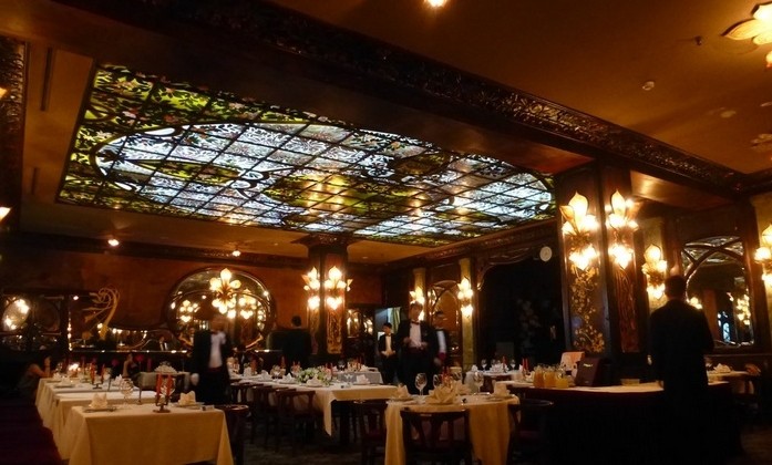 马克西姆的就餐环境非常高端,典雅,布局很合理,座位舒适。环境很幽静,灯光明暗正好。勃艮第少司焗蜗牛,肉很鲜很肥,像是黄油加罗勒酱焗的,正宗,但也比较腻。奶油蘑菇汤是很多人推荐的菜,奶香味很重,不过不是很合我口味,有点腻有点淡。烤小牛里脊奶油松茸,不愧是马克西姆的菜,牛肉烤得水平真的非常高。味道完全入进去了,不软烂,不过硬,刚刚好,牛肉质量也很高,酱汁也非常棒,特别是里面的松茸,很滑嫩。铁扒三文鱼黄油番茄少司, 摆盘非常漂亮,三文鱼味道正好,酱汁也不是很腻。藏红花鲷鱼比目鱼真的是最难忘的菜,这里的鱼真的很惊艳,鱼肉软嫩鲜香,配上藏红花酱的刺激性味道,简直太好吃了。服务员素质很高,服务意识很强。
