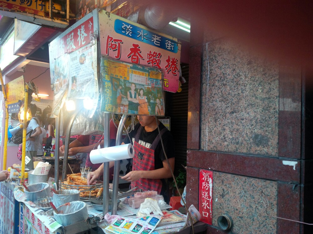 网友2014-10-07很有味道的淡水老街,小吃众多,可口鱼丸,阿香虾卷,每一样都口水流啊很有味道的淡水老街,小吃众多,可口鱼丸,阿香虾卷,每一样都口水流啊。渔人码头各种表演也很热闹,散散步看看夕阳,时间不知不觉就过去了。