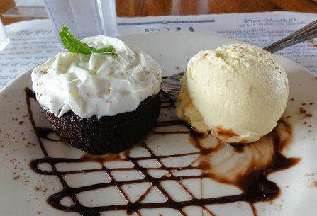他家很好找哦~外面蓝色的棚子~屋里面人还是属于比较密集的,总面积好像也不大呢,他家的鸡翅很好吃,里面的肉很嫩,外面很入味,甜辣甜辣的,油腻以后配上蒸红薯又会混合一些油脂,然后吃上旁边的黄瓜又会很清爽,感觉刚刚吃的油腻的东西没有不舒适的感觉了。朋友点的汉堡和薯条,薯条本身带味道的咸咸的,汉堡里面的肉很鲜嫩,不仅仅有牛肉哦,还有海鲜,各种配料的都有,都可以任意选择~服务也很满意,服务员一直都笑脸相迎~最后说甜点吧,稍微有那么一点点不是很精致,有点腻~黑巧克力的味道还不错~苦苦的比较纯~总结一下算值得了的。