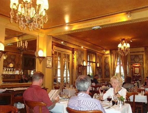 来到这家店,纯粹是被它的悠久的历史所吸引的,据说像雨果这类名人也常来这家店消费,所以算是慕名而来吧。这家店的装潢就和它的历史一样富有味道,带有点复古的风味。墙上还挂有一些画作,让我感觉很有文艺的气息。因为吃的是晚餐,所以点的东西很多,在这里我主要说一说我点的一道配着黑松露汁的牛排和一杯苏特恩白葡萄甜酒。七分熟的牛排,淋上精致名贵的松露汁,整道菜香气扑鼻,色泽明亮。一刀切开牛排,嫩嫩的牛肉让人胃口大开,肉质十分鲜美,牛肉吃起来充满了松露的味道。再来一口甘醇的葡萄甜酒,不得不说我也小资了一把。在这里,向大家特别推荐这道牛排,喜欢松露的朋友千万不要错过,而且相信大家一定会被这家店悠久的历史和浓郁的氛围所吸引的。