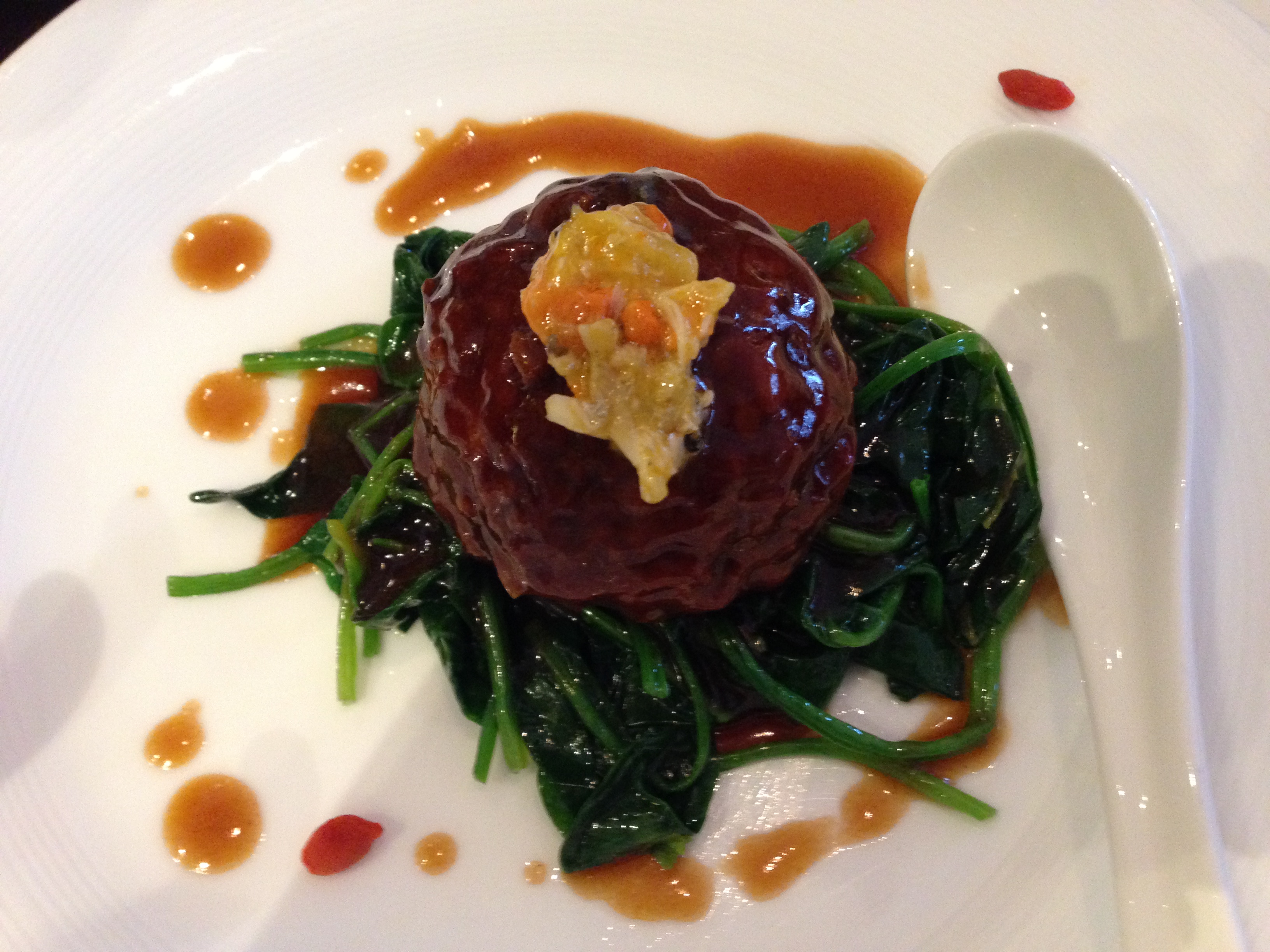 到上海看望好朋友,有机会来到这间餐厅。这里外面不是很起眼,我还走错门口,但一进去是另一片天地,环境很优雅,服务人员很热情。从菜谱,湿毛巾,到筷子摆放看的出来都是经过精心设计的。菜色很精巧,推荐他家的汤,狮子头,纸包蔬菜,芝麻球..!好像还有很多名人来过,离开时候在门口看到一幅纸上面很多签名喔。