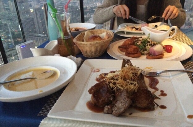 但是东西真的很好吃哦! 但是还是最喜欢牛排了, 另外让人惊喜的是 环境很好,居高临下的感觉太棒了