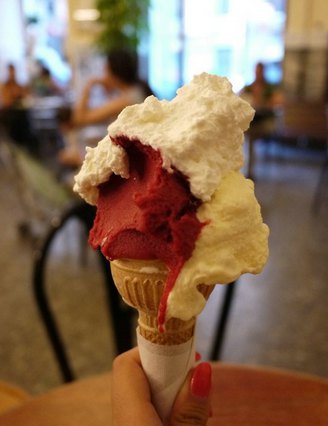 他家门面超级有感觉的,高大洋气上档次的有种不仅仅是卖糕点的感觉了呢~很复古式的装修,看得出花的很大手笔哦~超级美~ 东西也是稍微贵一点点的啦~如图所示哈哈,他家的冰激凌不是像别人家一样的中规中矩的造型~各有各的特色,每一块冰激凌都有自己的脾气~哈哈,各有各的姿态的感觉,尤其是那一抹红色~蔓越莓的味道,浓郁酸爽~满口的味道充裕着,还好有奶油的甜味,不然这酸爽~简直无法比喻呢~朋友打包的也很棒,他很喜欢我没尝到~但是每一种都好吃是真的~如果承受得住希望有人都尝尝一起分享哦~哈哈~