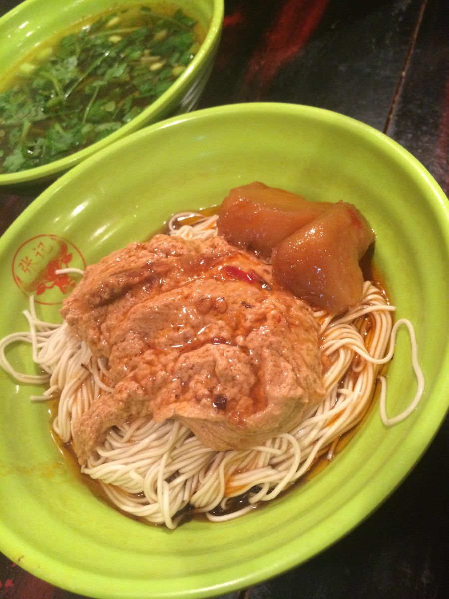 味道很好!就是价格好贵啊!电视上推荐来的。面馆不大,楼上楼下的环境布置都蛮清爽的,店堂包括餐桌收拾得挺干净。汤面粉之类的品种很多,号称百年老店,老弄堂的口味。红烧牛肉面,面是细面,倒还吃得惯,红烧牛肉选用的是牛腩,块头也可以,有六七块吧,炖得酥烂也很入味。汤头是咖哩味的,颜色很黄。汤里洒满了香菜和大蒜,蛮喜欢的。油水很足,感觉还是多了些油腻。牛杂面里的浇头还是挺丰富的,量也不少。上海有名的牛肉面也算吃过不少,这家对我来说可能是目前为止吃过最好吃的而且料也足。汤头很浓郁而且吃后不口干,应该是原汁原味。老板娘挺照顾人的,问我面要不要多一点,不用加钱。自己吃牛腱面,加了份牛杂,超赞,牛筋一点都不硬,牛腱面可以说是吃到现在最赞的了,虽然比起以前价钱涨了许多,但也没办法,物价都在涨,人家为了保住这正宗的口味也下了不少功夫。