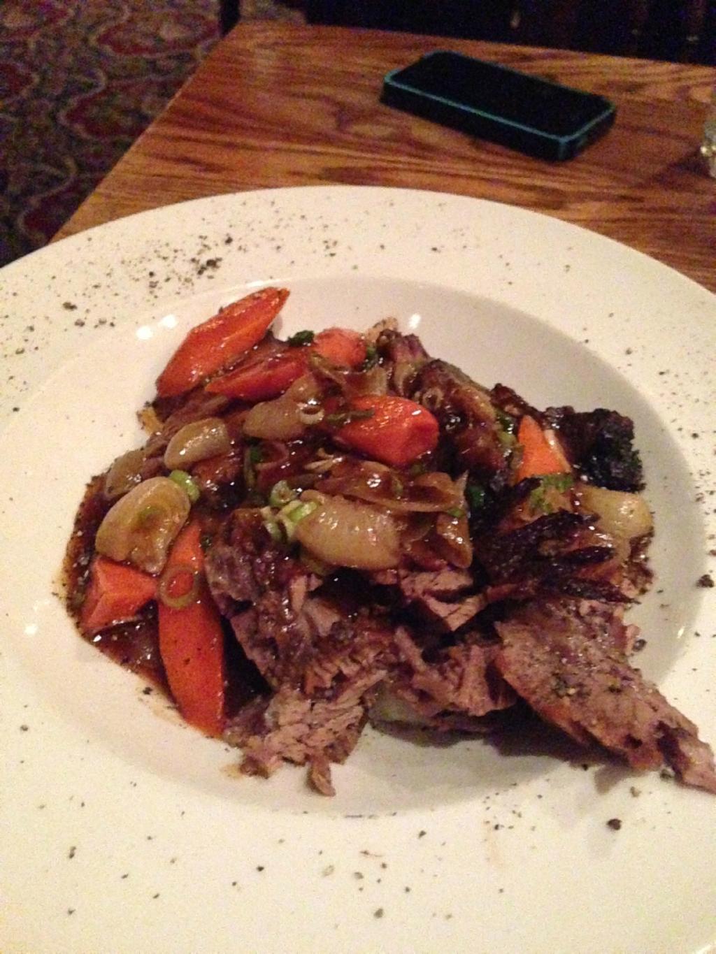布置的很复古的餐厅,我和朋友都很喜欢呐~ 我们点了肉和胡萝卜,胡萝卜和我想象中的一样,水分很大,很新鲜。肉质真是不知道用什么形容词来形容,真的是很好吃,入口会有肉汁出来,肉不仅鲜嫩而且调料味不是很重,不甜不咸口感正好,整个菜油也不是很多,超级棒哦!还有蓝莓和奶油的菜品,我和朋友本身不是很喜欢吃甜食,但是他家的这个菜真的不错,不腻并且口感清爽,我们都吃完了! 服务很到位的餐厅,老板人也很好,推荐各位来这家~
