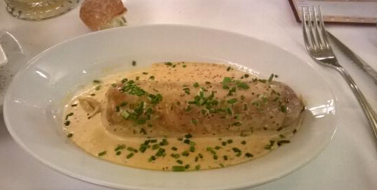 这可以说我旅游以来吃过最满足的一次了。这边的装修什么的好的没话说,服务员的态度也很好,基本都是你杯中水少于一半的时候,他们就会出现在你的面前帮你把水杯加满。当天点的菜系是我超级爱吃的。印象比较深的是一道猪肉腊肠。事先做好的猪肉腊肠配合上这边烹饪呢的高汤。加上一些奶油。味道吃起来真的是满满的香味加上猪肉的那种咀嚼感,口感复杂到闭眼享受的程度。还有这边的小牛排也是不一样的做法,也是加汤烹饪的手法。吃起来感觉味道更佳嫩,口感更加湿润。里面的薯条很好的将口感中多余的水分吸走。多吃不会产生腻的感觉。很不错,值得推荐。