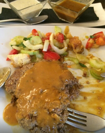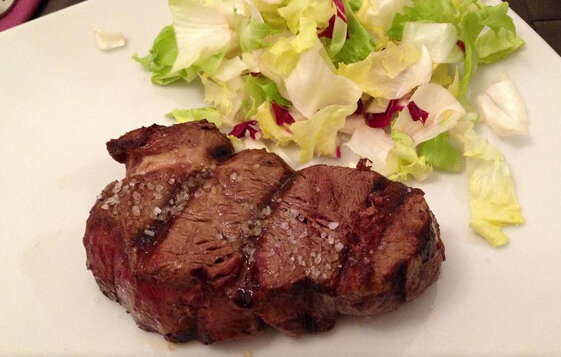 喜欢吃牛排的亲们可以来这家餐厅哦!这家的牛排在这个小镇上还是很出名的呢!牛排的种类非常的多。店内的装饰以黑白为主,让人感觉这家餐厅非常的干净和舒适,服务员面带微笑的把你引领到座位,然后就开始点餐了。 我和闺蜜这次两个人点的是不同口味的牛排,她的是有芝麻酱和奶昔配料的牛排,而我的是卤制的牛排并且上面还撒了一点白砂糖。朋友的牛排比我的牛排要油腻一点,我的比她的干一点,两个不同口味的牛排都是很好吃的。肉质都非常的上成,吃起来非常的有嚼劲,牛排旁边都有搭配一些新鲜蔬菜,要是觉得油腻的话,可以吃点蔬菜,会好一点的呢!