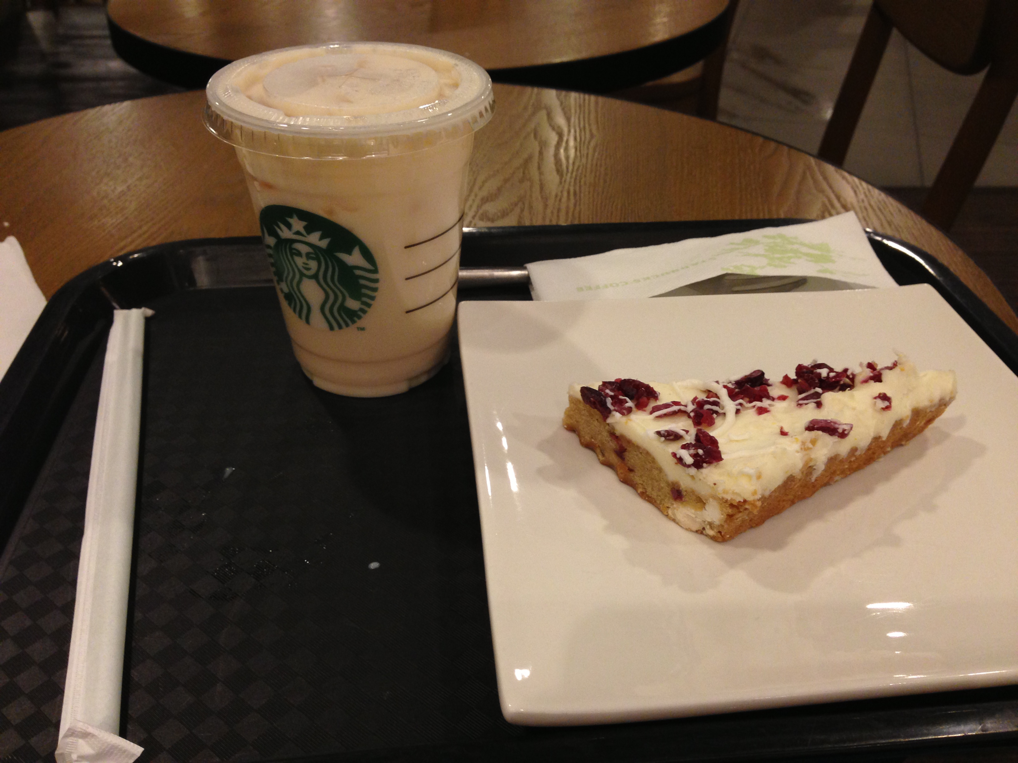 有段时间非常喜欢这家店,因为这是福建省内唯一一家24小时经营的星巴克,可是后来因为夜间经营成本太高就把营业时间改到了23:00.这家店服务态度很棒,有一个男生冲拿铁冲得很好,楼上的空间很大,去看书写论文都很舒服。图中是和朋友聊天时点的一些东西~~很喜欢烤土司和蔓越莓蛋糕啦~