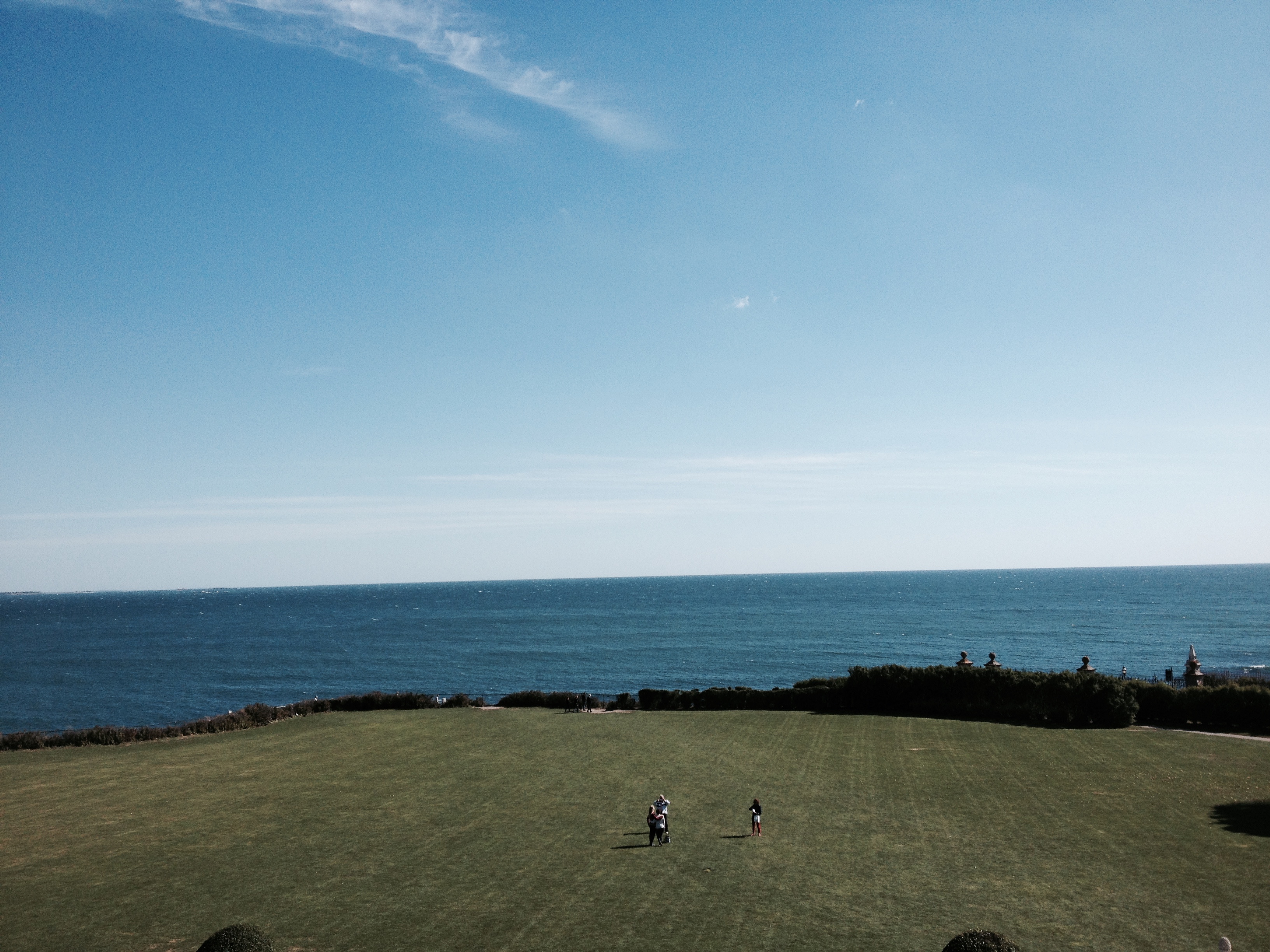 风景太美了,山庄外的海岸线美得让人窒息,有很多人在跑步、遛狗。后来看到别墅,老公就想进去参观一下,没想到用手机一百度,竟然就是罗德岛州最著名的景点之一,听涛山庄。门票19刀,还有带其他几个景点的联票,好像30几刀,因为天色晚了,就只买了这个,确实还是值回票价的。建筑很有特色,内部的装修既奢华又现代。好几个主人卧室都用窗帘同色布贴的墙壁,好像现在流行的壁纸、壁布。在二楼平台看海景,视角特别好。老公说这个平台最适合我练瑜伽了,o(^▽^)o~总之非常值得去,我们打算等天气暖和了再去一次呢~
